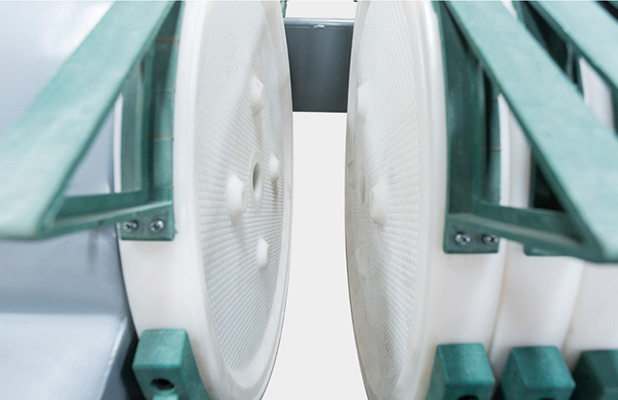 ③濾板采用進(jìn)口高分子PE專利技術(shù)高壓壓制成型,確保每塊濾板使用壽命更長;