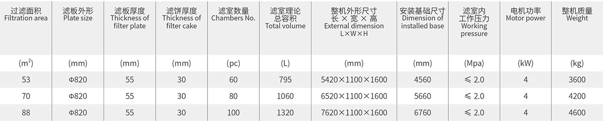 D720、D820、D1100型壓濾機(jī),過濾壓力高(2.0——3.0mpa), 效率高,含水率低,適用于各行各業(yè)物料脫水處理?,F(xiàn)已應(yīng)用于市政、礦山、紙業(yè)等多個大型固廢脫水處理行業(yè)。設(shè)備使用簡單,操作、維護(hù)方便,是理想的固液分離設(shè)備。專利技術(shù)(專利類型:發(fā)明、專利號:CN207980547U),圓形濾板,濾板面結(jié)構(gòu)自主知識產(chǎn)權(quán)設(shè)計(jì),使用壽命長,密封性強(qiáng),不噴漿,耐高壓,過濾效果好,濾餅含固高。