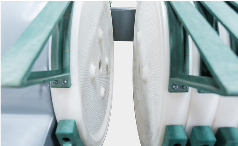 是過(guò)濾的核心元件,主要由濾板、裝在濾板上的濾網(wǎng)、濾布、濾布?jí)喝?、把手和出水管等組成,按一定順序排放在主梁上,壓緊時(shí)形成一個(gè)個(gè)過(guò)濾室。過(guò)濾時(shí),物料在入料泵的推動(dòng)下,經(jīng)止推板上的入料孔,(大型壓濾機(jī)壓緊板處有輔助進(jìn)料孔)。進(jìn)入各濾室,料漿借助于入料泵的壓力在濾布兩側(cè)形成壓力差,固體顆粒被滯留在濾室內(nèi)形成濾餅,濾液經(jīng)濾板通道和出水管排出。