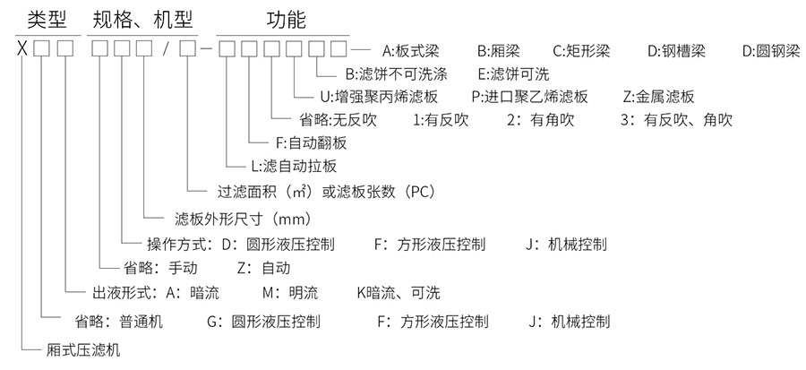 金凱地壓濾機設(shè)備型號說明,如下圖