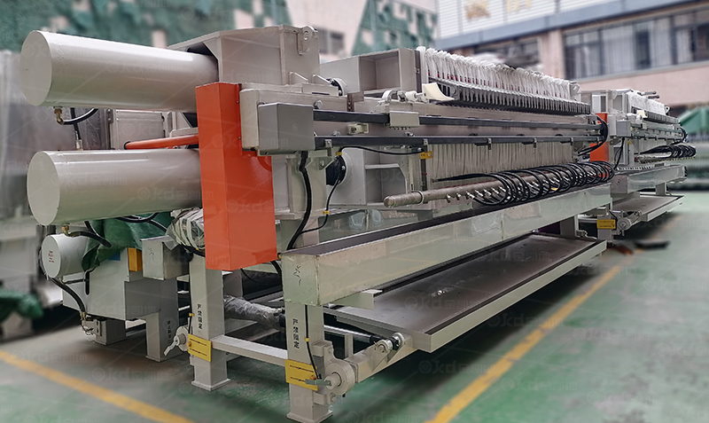 在一般的壓濾機都是使用的明流排水,所以我們對明流排水的廂式壓濾機或隔膜壓濾機都很熟悉,我們看到這樣的壓濾機,當(dāng)過濾液通過濾室后,直接通過濾板下方的排水管道,在通過水龍頭直接的排出設(shè)備外。而暗流的壓濾機設(shè)備就是在水龍頭的下方設(shè)計了一個收集過濾液的系統(tǒng),將過濾出來的設(shè)計在通過管道集合起來。常規(guī)的方法就是將壓濾機濾板下的水龍頭再接一個密封的軟管,而軟管的下方設(shè)計了一個與所有軟管相連的更大一些的管道,這樣就可以將液體和好的保護起來。暗流壓濾機一般適用于有毒,有味,易揮發(fā),易燃的物料。