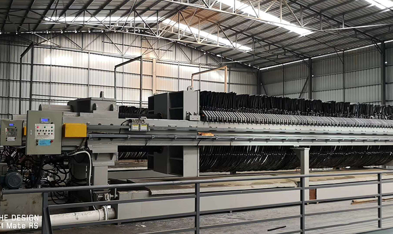 采用兩臺由金凱地壓濾機設(shè)備廠家生產(chǎn)的100mm ×1000mm 的全自動板框式隔膜壓濾機進行污泥脫水。濾框用增強聚丙烯濾板,該材質(zhì)強度高、重量輕、耐腐蝕、耐酸堿、無毒無味。采用液壓壓緊,并用電接點壓力表自動保壓,確保形成濾餅的最佳條件,進行加壓過濾。操作簡單、維修方便,并配有多種安全裝置,確保了操作人員安全。自調(diào)試運行以來,效果良好。污泥脫水主機及其配套裝備的機械性能及工藝性能均達到并超過預(yù)期的要求。