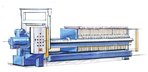 長期以來.壓濾機的自動卸餅始終是一個困擾壓濾機完全自動化的頑癥.由于某些濾料固有的特殊性.導致濾餅與濾布的粘連.卸餅難度的提高.經過長年地研發(fā)和經驗地積累.開發(fā)了多種成熟的自動卸餅機構.根據不同的物料.選配不同的自動卸餅裝置,實現了由全自動操作取代了最初的人工操作.全自動的卸餅裝置取代了最初的人工卸餅的過渡.大大減小了勞動強度.提高了工作效率.長框架卸餅裝置利用拉板時框架的振動帶動濾布的振動.從而完成快速卸餅,在處理粘性較高的污泥時.一般采用全自動刮刀裝置.通過外力幫助壓濾機卸餅.